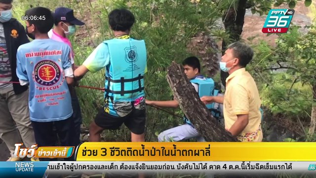 เจ้าหน้าที่ช่วย 3 ชีวิตติดน้ำป่าในน้ำตกผาลี่