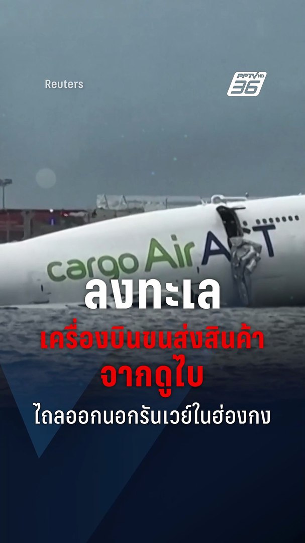 เครื่องบินขนส่งสินค้าจากดูไบ ไถลลงทะเล ออกนอกรันเวย์ในฮ่องกง | PPTV Online